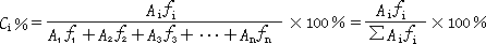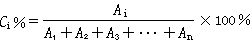 由于組分的量與其峰面積成正比,如果樣品中所有組分都能產(chǎn)生信號,得到相應(yīng)的色譜峰,那么可以用如下歸一化公式計(jì)算各組分的含量。