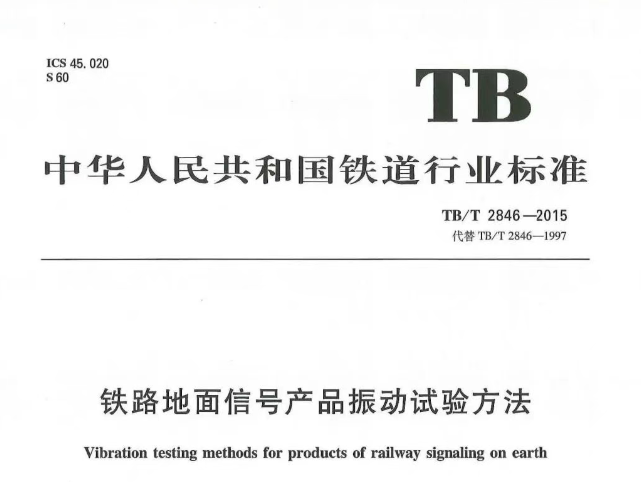 《TB/T 2846-2015 鐵路地面信號(hào)產(chǎn)品振動(dòng)試驗(yàn)方法》是中國(guó)鐵路行業(yè)標(biāo)準(zhǔn)之一,專門(mén)針對(duì)鐵路地面信號(hào)設(shè)備的振動(dòng)試驗(yàn)制定了詳細(xì)的方法和要求。該標(biāo)準(zhǔn)旨在確保鐵路地面信號(hào)產(chǎn)品在實(shí)際使用中的可靠性和耐久性,特別是在面對(duì)振動(dòng)環(huán)境時(shí)能夠保持正常功能。以下是關(guān)于此標(biāo)準(zhǔn)的一些關(guān)鍵信息: