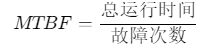 MTBF是指設(shè)備在兩次相鄰故障之間的平均運(yùn)行時(shí)間,單位通常為小時(shí)(h)。其數(shù)學(xué)定義為: