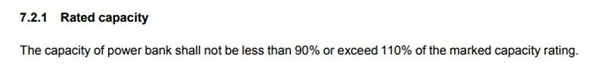 3. 容量測試要求,舊版標準要求測出容量值必須大于標示值,新版標準修改為要求測出容量值必須在標示值90%-110%范圍內(nèi)。