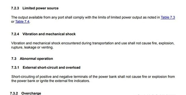 2. 電路保護要求增加了: 對于內(nèi)部電芯的溫度,電壓和電流保護的測試要求,尤其當廠商規(guī)定的允許充電范圍超出10-40°C時,相關(guān)測試還需要在高溫和低溫情況下評估。
