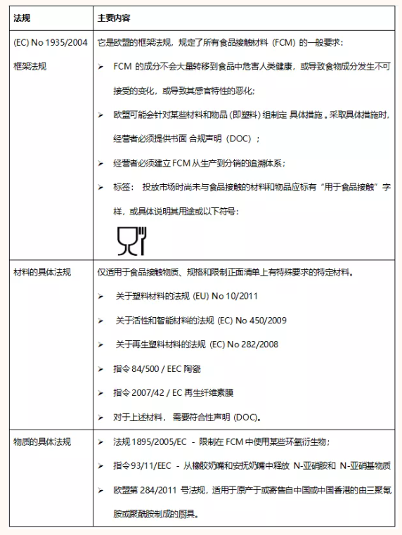 食品接觸材料的產品出口歐盟,不僅要滿足歐盟法規(guī)要求,出口到具體的歐盟成員國還需滿足成員國對食品接觸材料的特殊的法律法規(guī)要求。對于粘合劑,紙張,不銹鋼等歐盟沒有法規(guī)要求,可按歐盟成員國自己的要求和政府間組織-歐洲委員會(CoE)的要求。